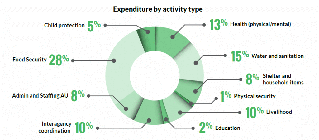 EAA members are responding to the emergency in a range of different humanitarian aid activities. This chart provides an indication of the areas in which our members are providing assistance using the funds raised by the EAA appeal.