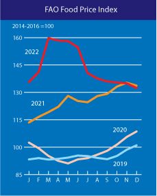 At the start of the war, Russia blocked Ukraine’s ports, holding 20 million tonnes of grain on the Black Sea shores. As part of the Black Sea Grain Initiative, Russia agreed to stop the blockade in July 2022. As of November 2022, these shipments have recommenced, which has helped to reduce the high food prices. However, shipments are still about 40-50% below pre-war levels.